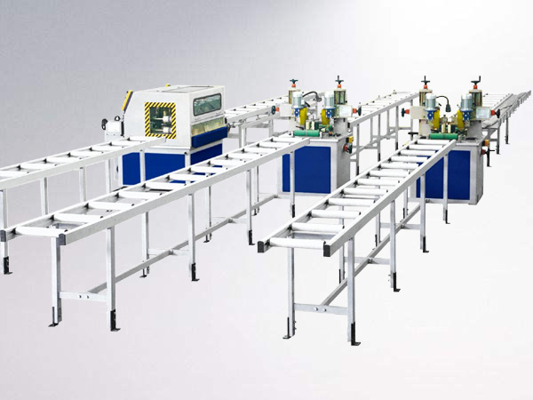 1、開(kāi)齒穿條在同一臺(tái)設(shè)備一步完成,可以用兩臺(tái)開(kāi)齒穿條機(jī)實(shí)現(xiàn)兩組鋁型材的組合;